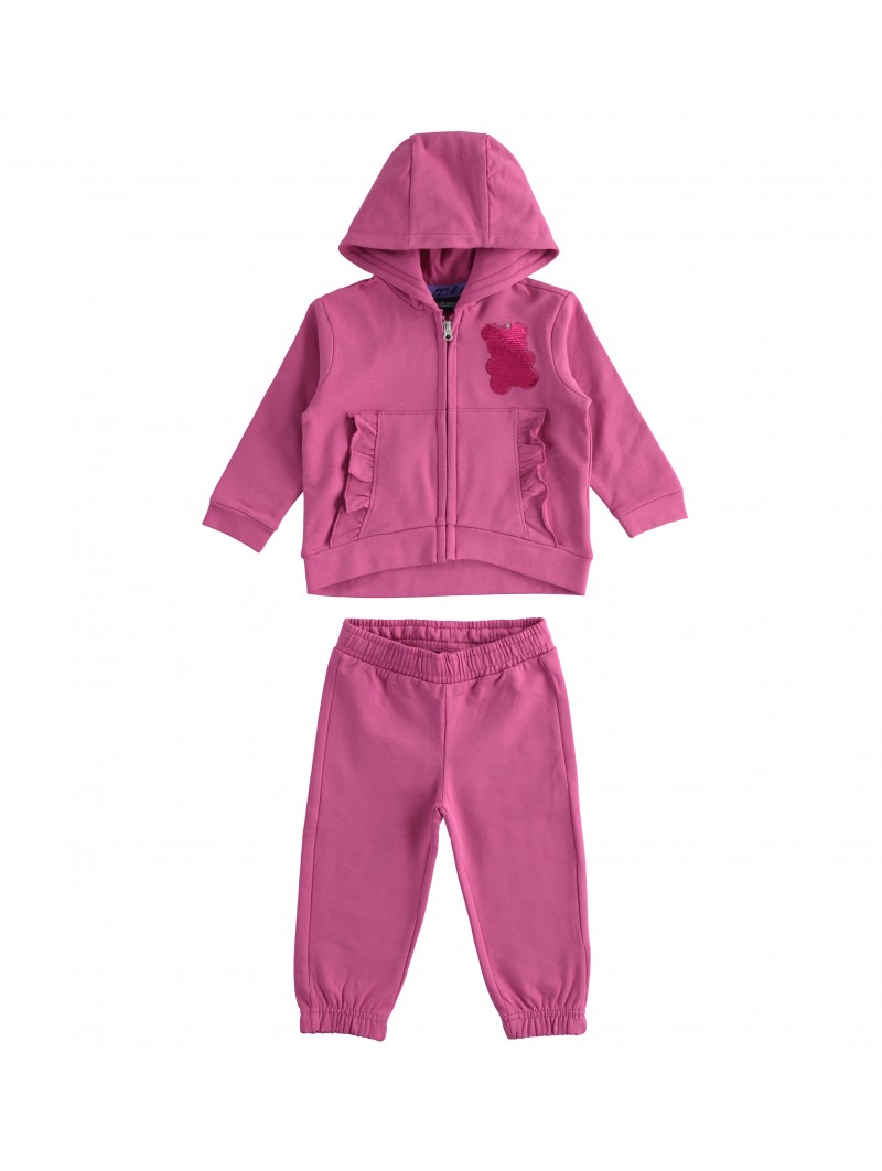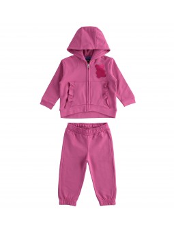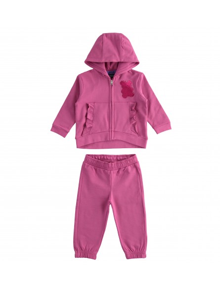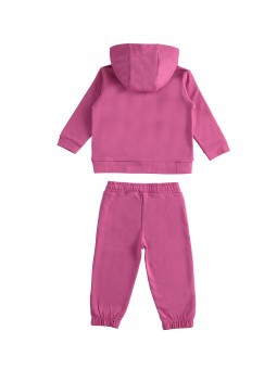 Tuta due pezzi Sarabanda con zip e cappuccio in caldo cotone, variante colore unico per bambina da 12 a 24 mesi