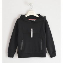Felpa con cappuccio Sarabanda in caldo cotone con polsini e finta tasca variante colore unico per ragazzo da 8 a 16 anni