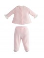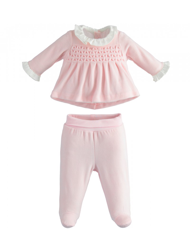 Tutina due pezzi Minibanda con piedino in ciniglia variante colore unico per neonata da 1 a 3 mesi