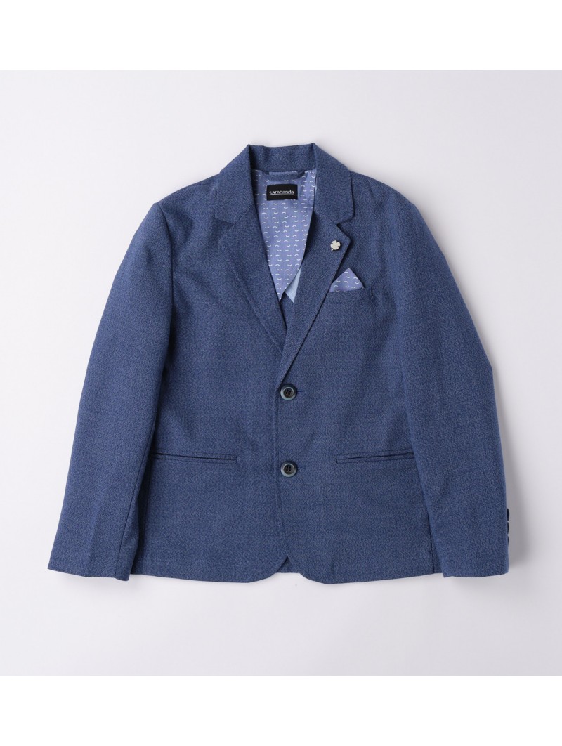 Elegante giacca Sarabanda in cotone con spilla e pochette, variante colore unico per ragazzo da 10 a 14 anni